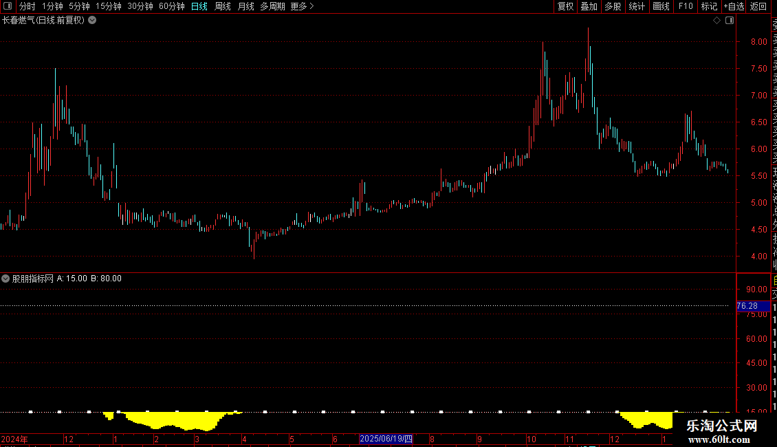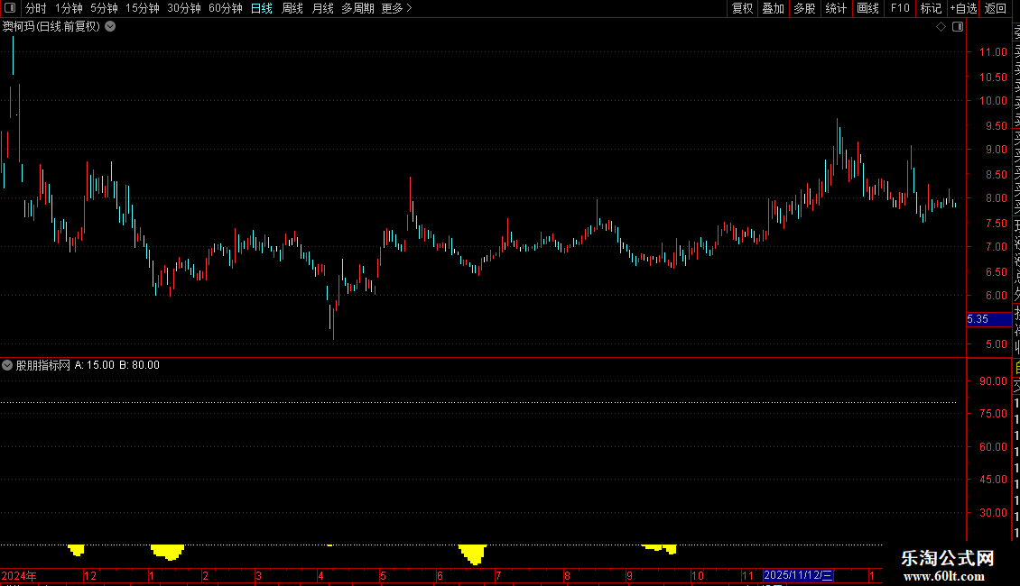 它在主图或副图显示三条核心线:绿色短线、红色中线、黄色长线,分别对应21、37、55周期。指标在数值15和80处绘制水平参考线。