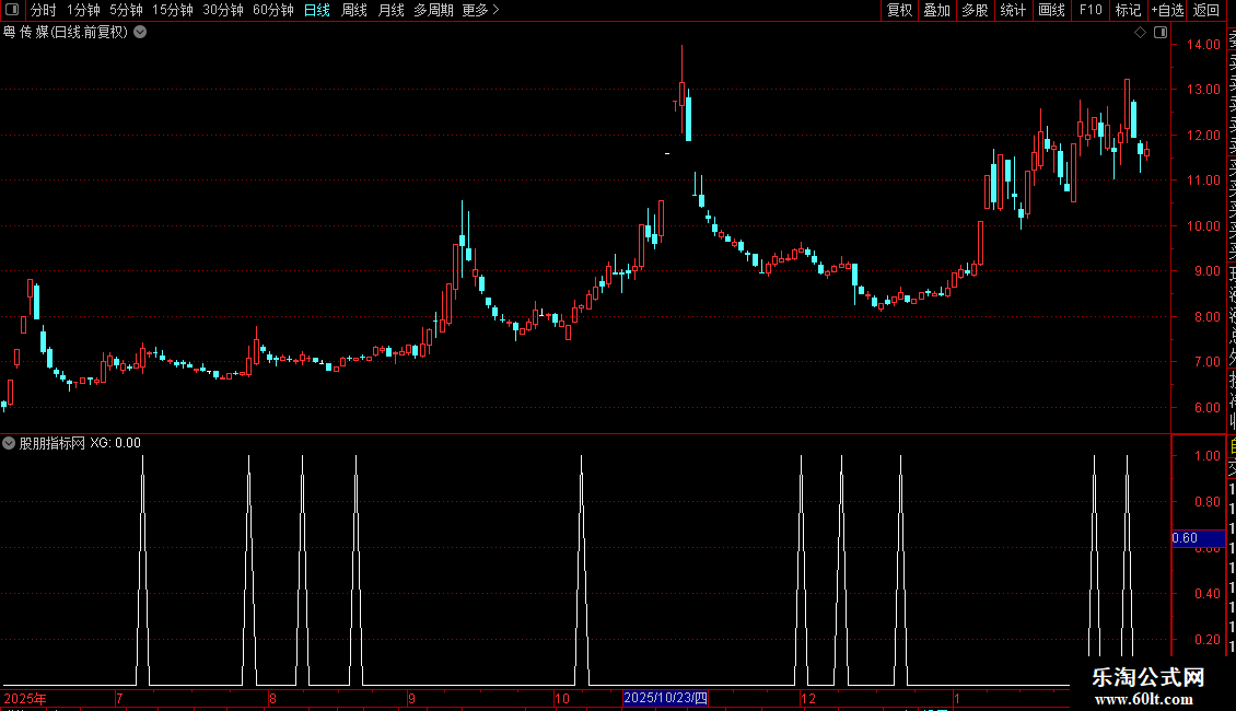 主要功能是识别短期均线差值上穿零轴的转折点,以此作为潜在的买入或趋势启动信号。指标通过条件函数控制线条的显示,使图表更直观。最终输出信号点,便于进行条件选股或预警。