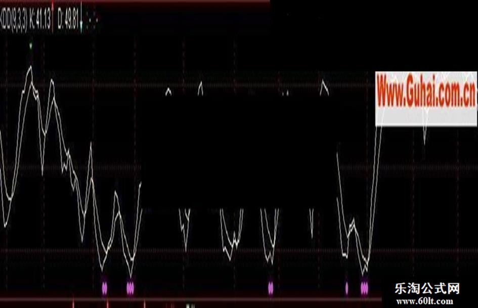 公式代码: RSV:=(CLOSE-LLV(LOW,9))/(HHV(HIGH,9)-LLV(LOW,9))*100; K:SMA(RSV,3,1); D:SMA(K,3,1); IF(COUNT(K>80,3)=3,95,DRAWNULL),POINTDOT,COLORGREEN,LINETHICK5; IF(COUNT(K<20,3)=3,5,DRAWNULL),POINTDOT,COLORFF33FF,LINETHICK5;