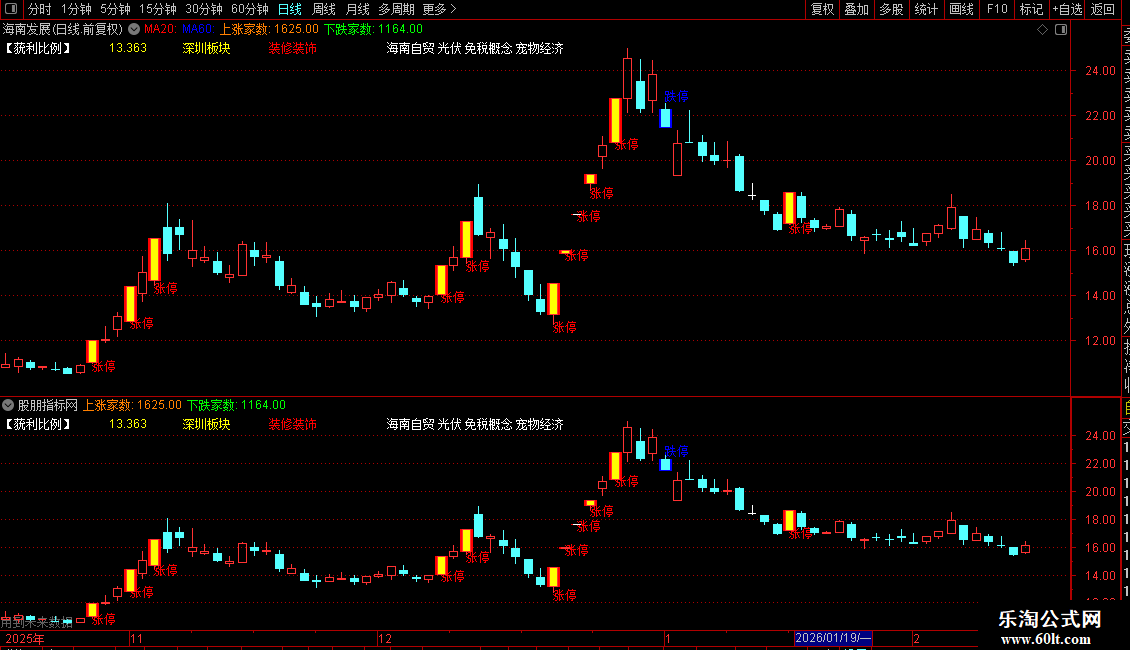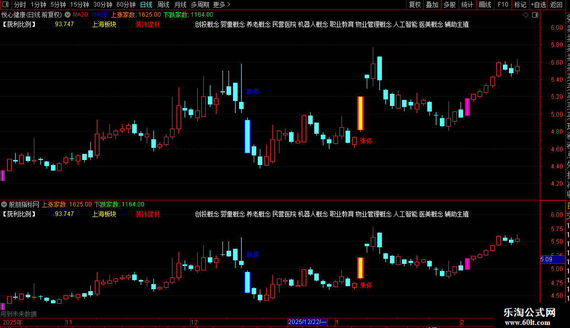 1. 特殊K线标识:用不同颜色高亮显示涨停、跌停及涨幅超过9.5%的K线。