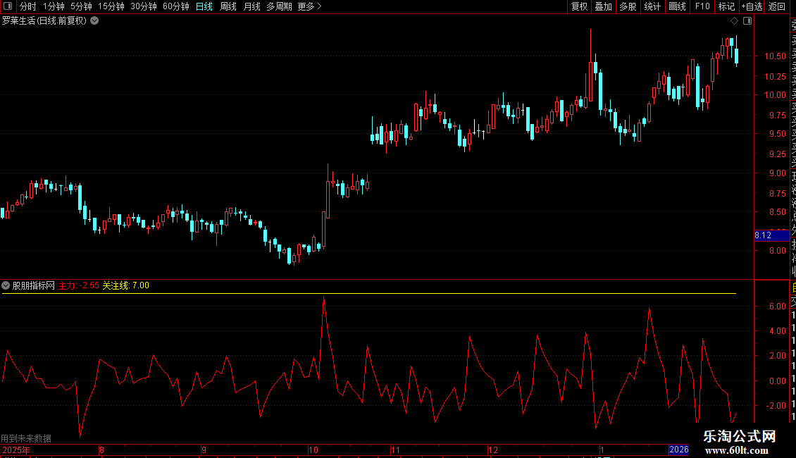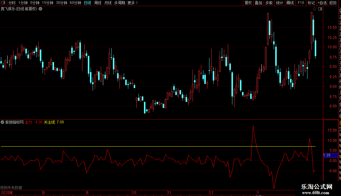 指标通过计算DIF与DEA的差值变化(类似MACD柱状线放大处理),反映短期资金动向。输出“主力”线表示动能的日变化,结合“关注线”辅助判断强度。