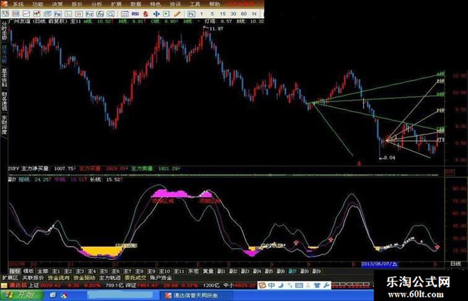 看底:STICKLINE(中线<15,中线,15,6,0),COLORF00FF0;