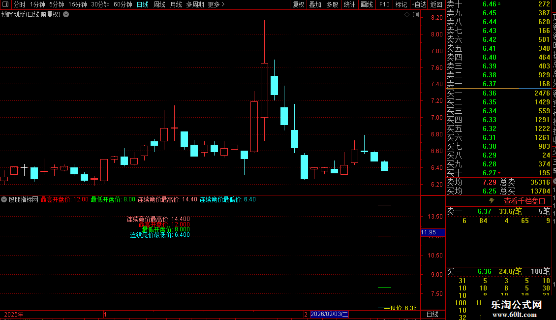 DRAWTEXT_FIX(1,0.45,0.25,1,STRCAT('连续竞价最低价: ',CON2STR(连续竞价最低价,3))),COLORCYAN;