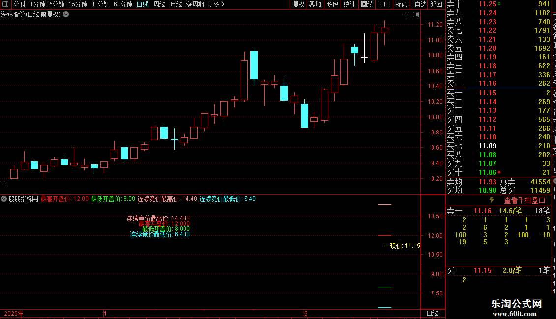 STICKLINE(ISLASTBAR,连续竞价最低价,连续竞价最低价,5,0),COLORCYAN;
