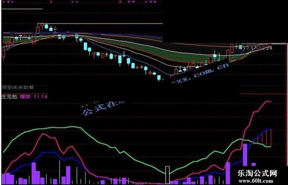 散筹:EMA((WINNER(C*1.1)-WINNER(C*0.9))*70,5),COLOR66FF00,LINETHICK2;