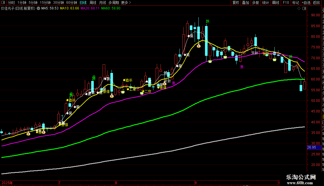图标信号:如孕线、地天针等特殊K线组合的提示。