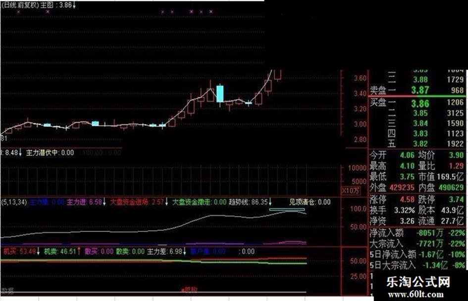 3.通达信分时买点指标公式【买卖、主力差、散户差】