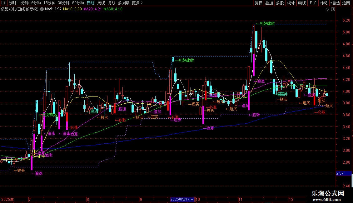 DRAWTEXT(CROSS(短线,长线),L-0.38,'←走牛') ,COLORYELLOW;