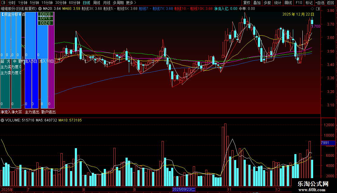 DRAWTEXT_FIX(CURRBARSCOUNT=1,0.128,1,0,'散户进出'),COLORWHITE;