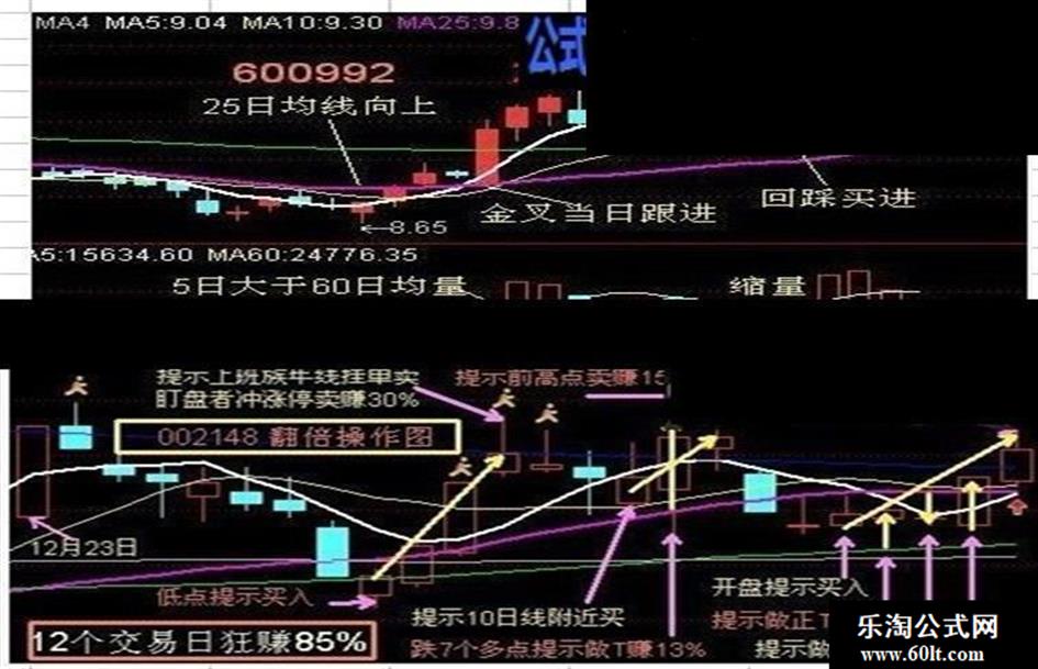 他在专著里透露,其实他使用的2560战法十分简单:25日均线坚决向上,5日均线上穿或回踩25日均线时,成交量5均量大于60均量就是介入机会,最好此时出现缩量小星线过渡: