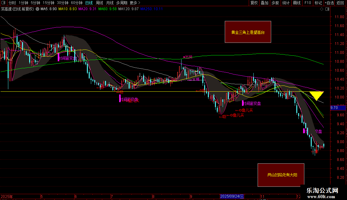 DRAWTEXT_FIX(1,0.70,0.10,0,'黄金三角上是望高台'),COLORYELLOW;