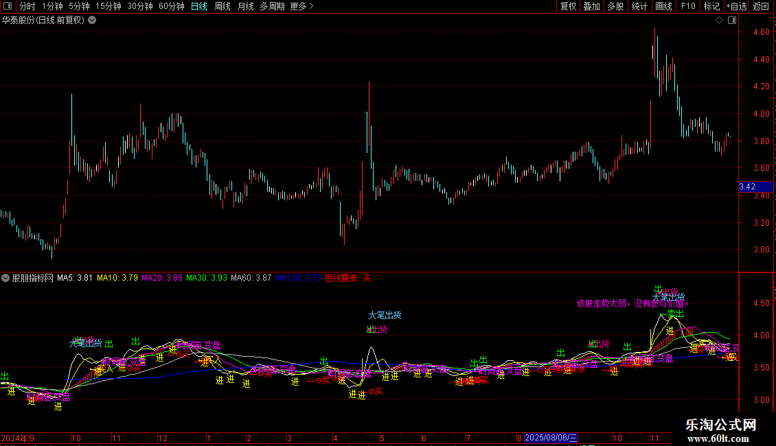 DRAWTEXT(CROSS(R3,R4),(LOW-0.1),'进'),COLORYELLOW;
