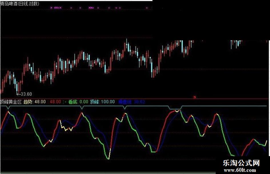 顶峰:IF((趋势-VAR6A>85),95,100),COLORF0F000;