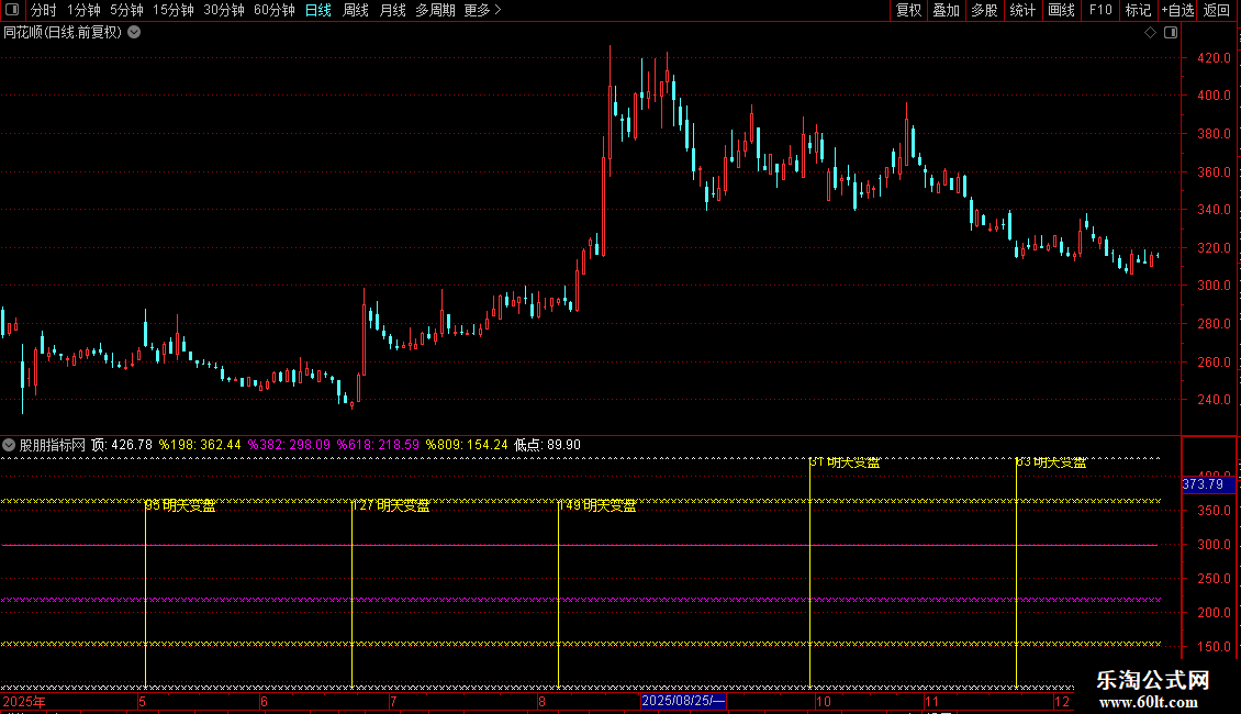 DRAWTEXT(成立距今=(32*8)-1,高-高*0.016,'255 明天变盘'),COLORYELLOW;