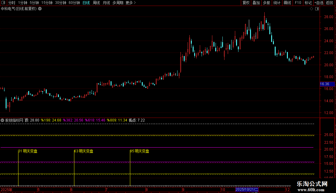 DRAWTEXT(成立距今=(32*2)-1,高-高*0.016,'63 明天变盘'),COLORYELLOW;