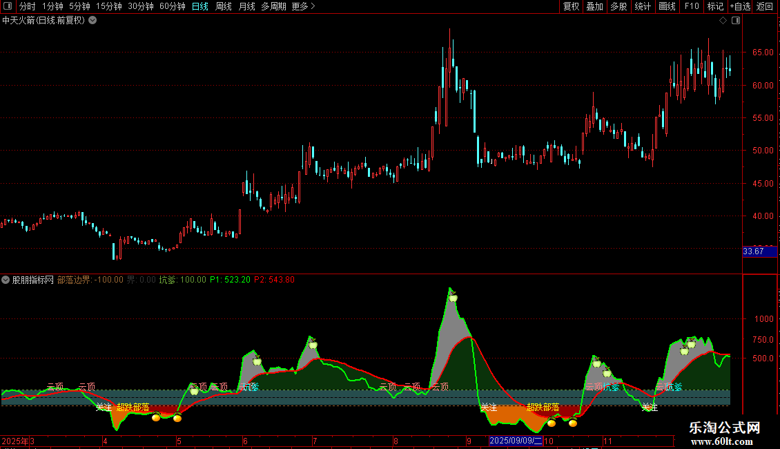 DRAWTEXT(CROSS(-100,CZ),-120,'超跌部落'),COLORYELLOW;