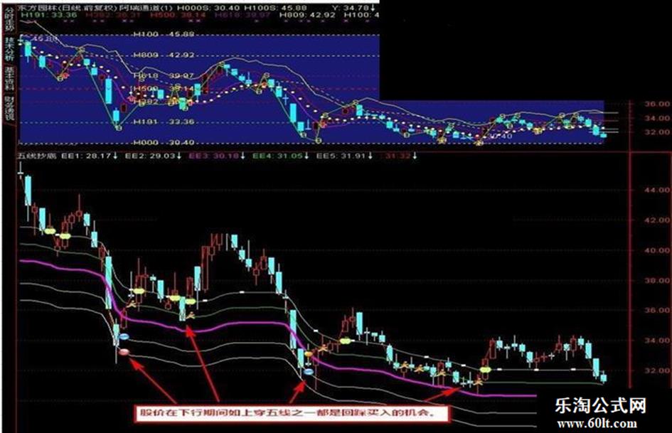 股价在下行期间如上穿五线之一都是回踩买入的机会。看图即会。