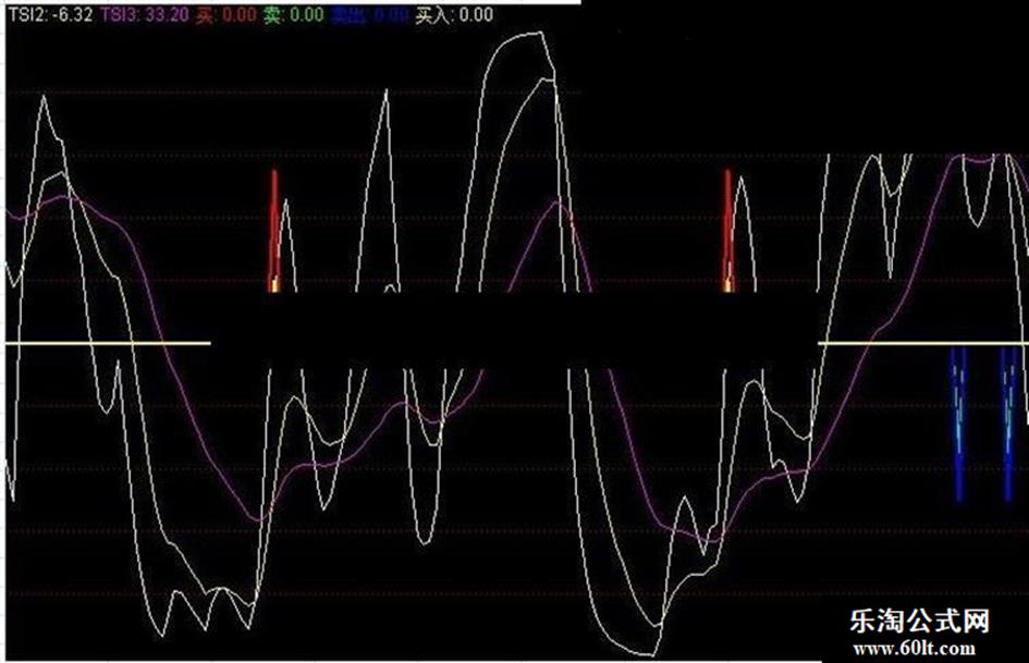 卖出:IF(CROSS(TSI2,TSI1)AND TSI1>50 ,-50,0),LINETHICK2,COLORFF0000;