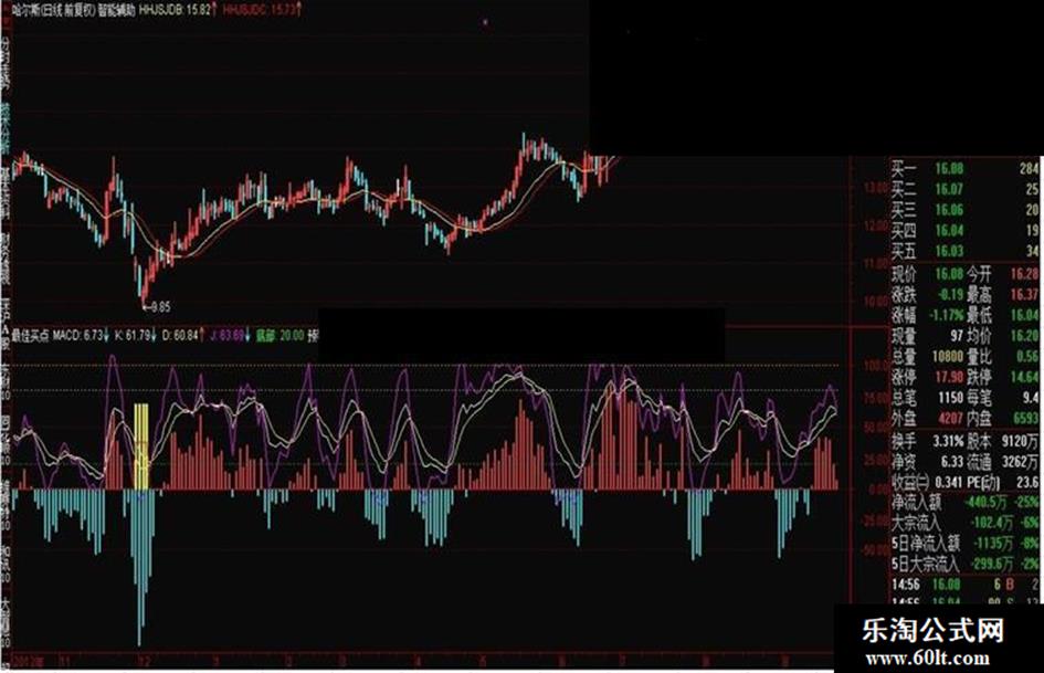 说明:此指标简单明了,没有花花绿绿的颜色,出现黄柱就是买点,准确率高,适合大众操作。