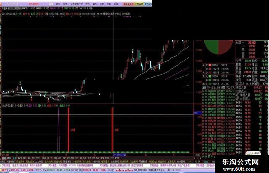 均线粘合使用的原理:30均线,60均线,90均线,120均线,250均线为主图,30线为工作线,30线走平后向上,股价突破30线就是买点