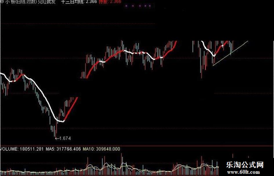 持股:IF(十三日均线>=REF(十三日均线,1),十三日均线,DRAWNULL),COLORRED,LINETHICK3;