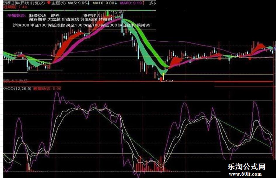 底部动态:EMA(IF(L<= LLV(L,40),SMA(ABS(L-REF(L,1)),40,1)/SMA(MAX(L-REF(L,1),0),40,1),0),3)*10,STICK,COLORRED,LINETHICK2;