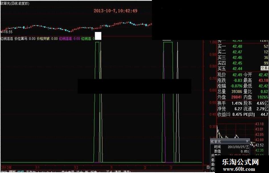 刚才终于把源码有400多行的黑马公式编写完成了,感觉效果非常好。我在编写此大型综合指标时使用了多个组份指标,其中有个叫做“红线连连和价位突破”的组分指标是我于去年就编写好的指标,它与网上的某些收费指标属于同一类指标,都是试图找到连续多日阳K线的股票和介入位点。当时编写此指标的依据是杨过所坚信的以下观点:最直接和最简单武器和招示最为有效。因此,该指标仅从K线形态和股价角度来找出后期会快速上涨的股票和位点,与其它同类指标相比还具有以下优点:1)红K线的阳线数统计不是100%阳线,这与实际股价的上涨情况相符;2) 增加了价位黑马信号和价格突破信号。
