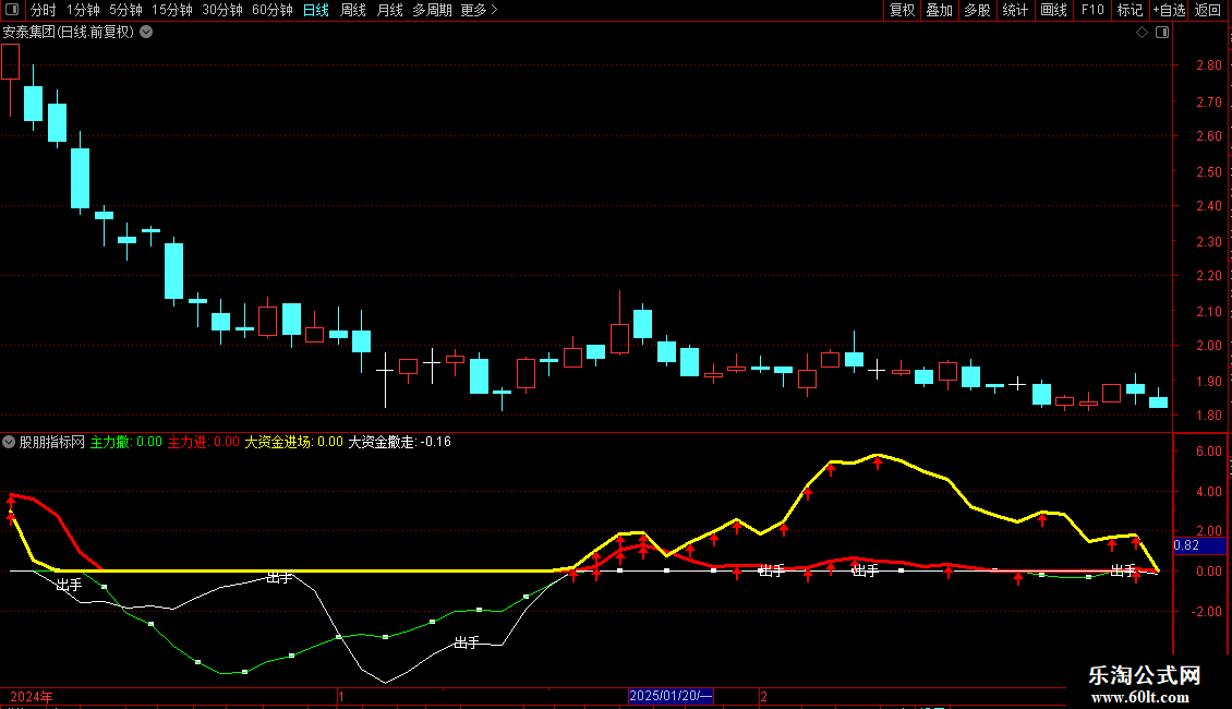大资金撤走:IF(VB<=0,VB,0),COLORWHITE;
