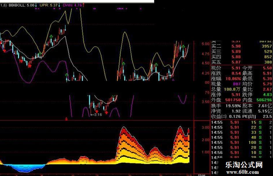 STICKLINE(买卖差<0,(卖线+买卖差*0.4),(卖线+买卖差*0.55),5,0) ,COLOR00CC00;
