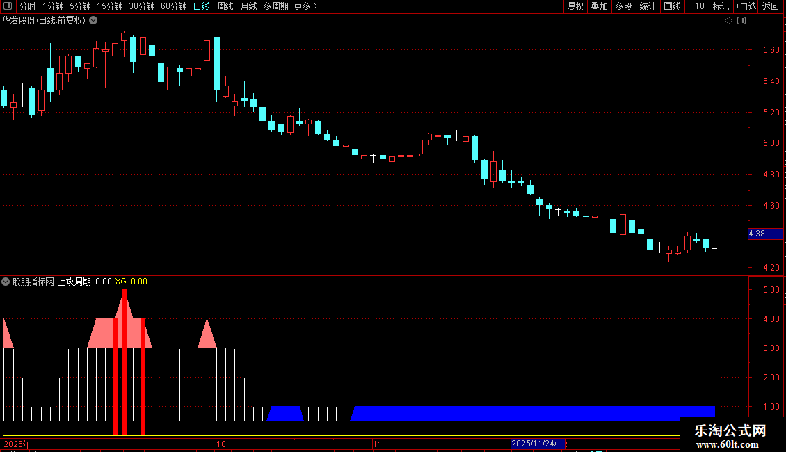 STICKLINE(COUNT(上攻周期>3,5)>=3 AND SG,0,上攻周期,1.5,0),COLORRED;