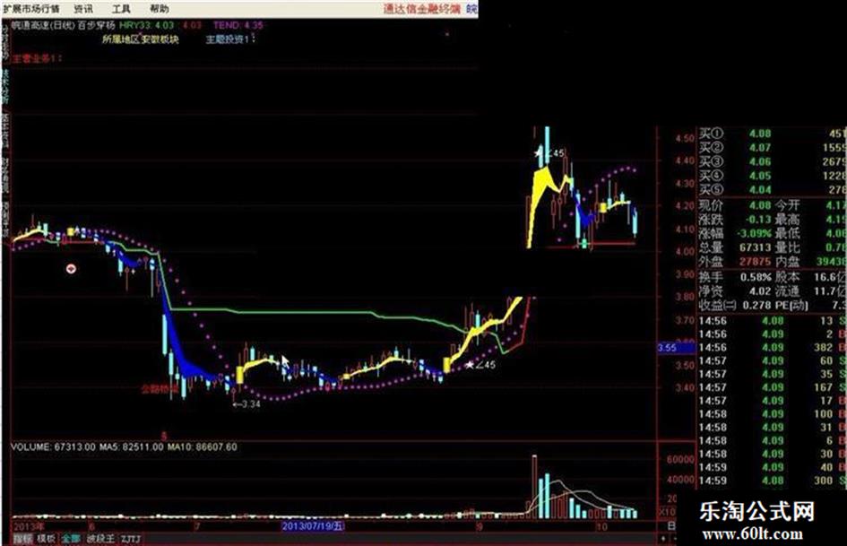 超卖:=MA(C,10)*IF(CAPITAL=0,0.95,0.9),POINTDOT,COLORRED,LINETHICK2;