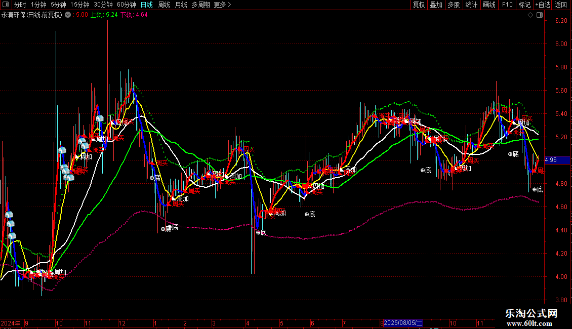 下轨:EMA(AR2,80)*(1-100/1000),CIRCLEDOT,COLORLIMAGENTA;