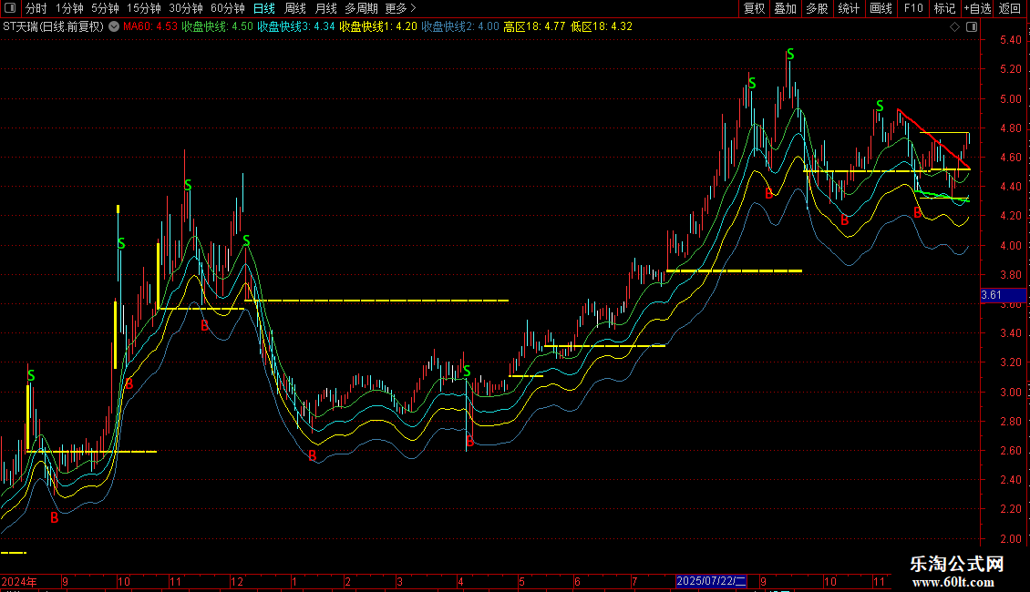 AA:STICKLINE(K1,REF(L,K1-1)*1.002,REF(L,K1-1),5,0),COLORYELLOW;