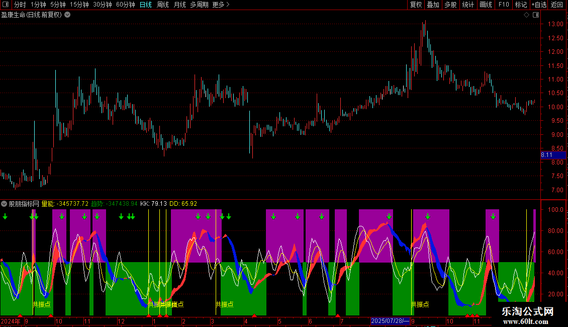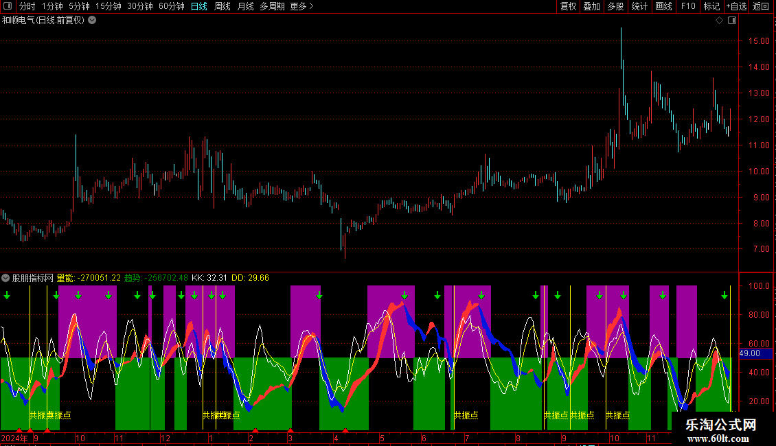 DRAWTEXT(CROSS(VAR4,VAR5) AND CROSS(KK,DD),10,'共振点'),COLOR00FFFF;