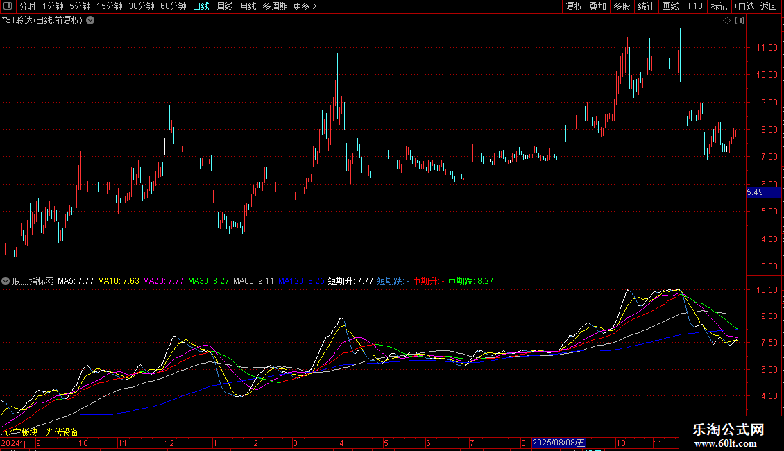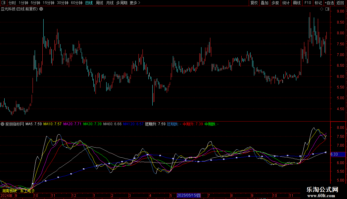 中期升:IF(REF(MA30,1)<MA30,MA30,DRAWNULL),COLORRED;