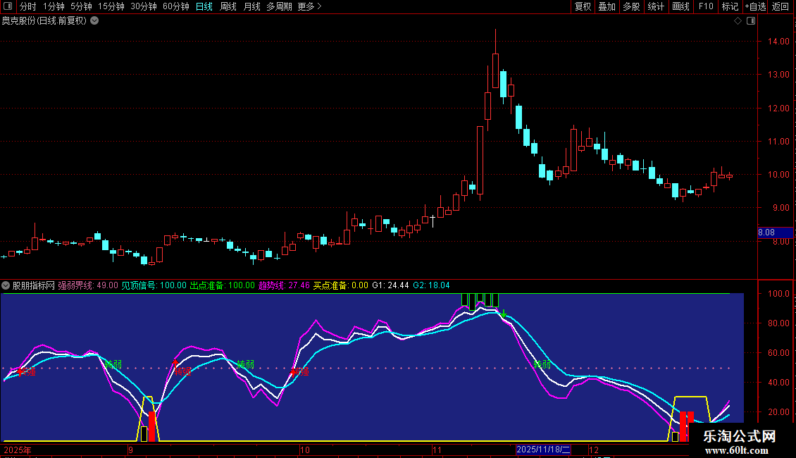 出点准备: IF(crOSS(J2,J1) AND J2>85,70,100),LINETHICK2,COLOR00FF00;