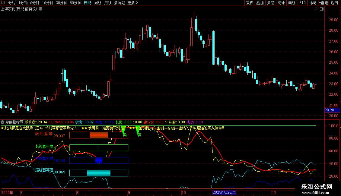 DRAWTEXT(CURRBARSCOUNT=116,30,'短线套牢度:'),COLORFFFF00;
