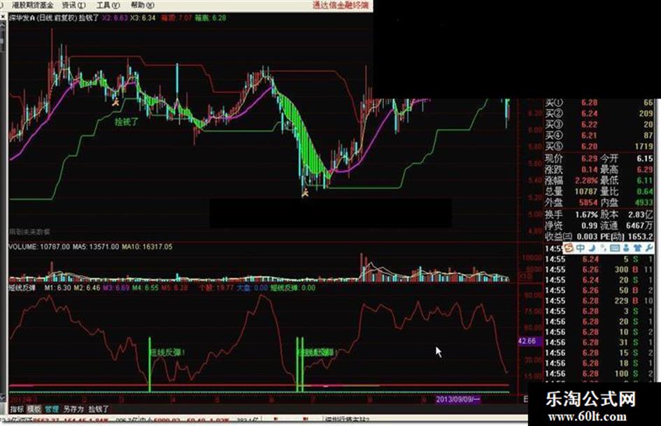 短线反弹:IF(CROSS(个股,9),50,0),STICK,LINETHICK3,COLOR00FF00;