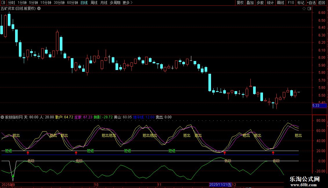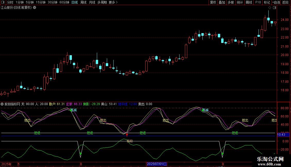 DRAWTEXT(CROSS(庄家,散户) AND 散户>40 AND 71>散户,50,'短出'),COLOR00FFFF;