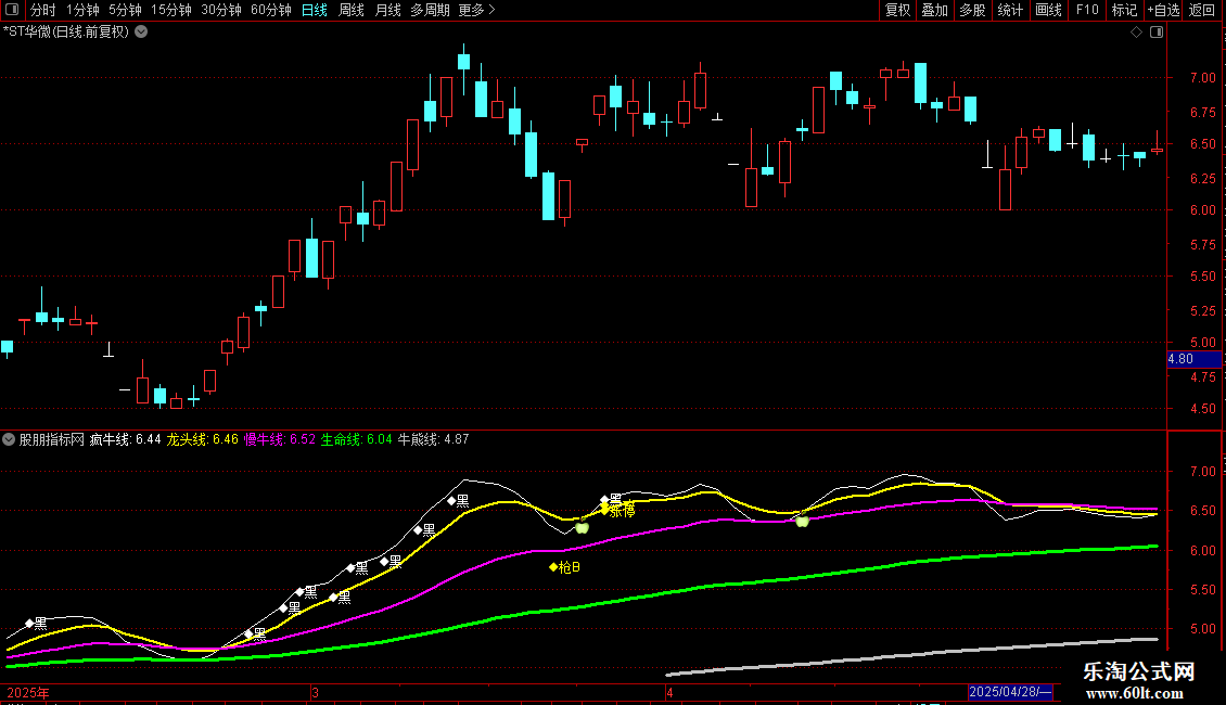 AND UPNDAY(慢牛线,3),LOW*0.97,'◆枪A'),COLORMAGENTA;