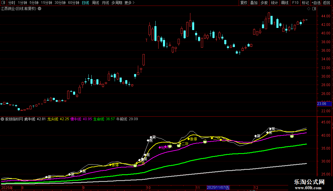 慢牛线:EXPMEMA(当日成本,25),LINETHICK2;