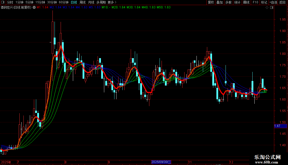 M1:EMA(C,5),COLORRED,LINETHICK4;