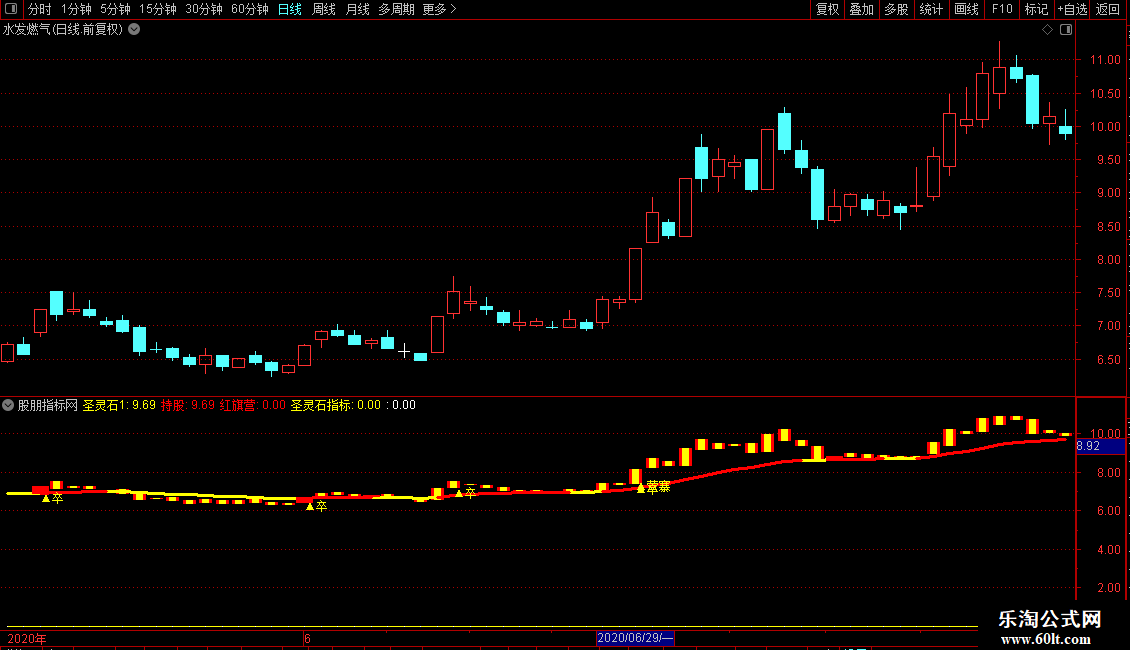 DRAWTEXT(VOL>REF(V,1)*1.9 AND 圣灵石2,L*0.99,'▲营寨'),COLORYELLOW;
