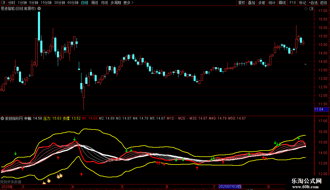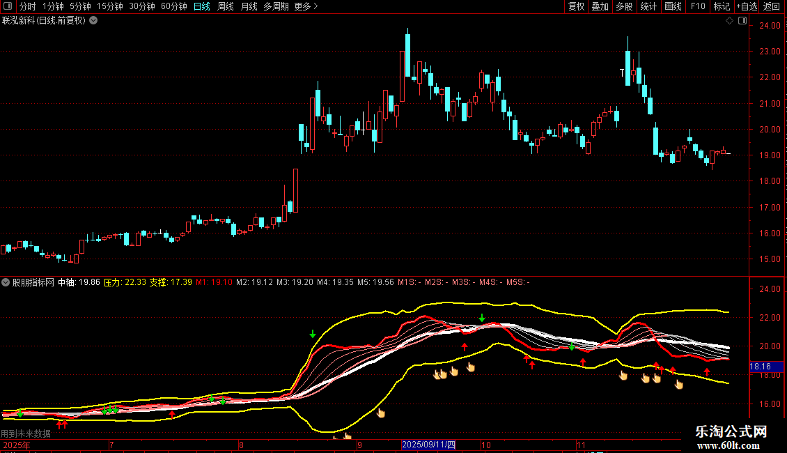 压力:中轴 + 2*STD(C,21),COLORYELLOW,LINETHICK2;