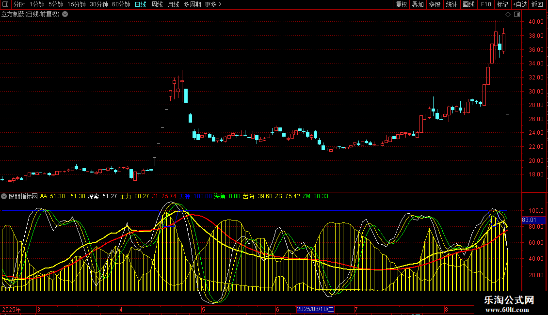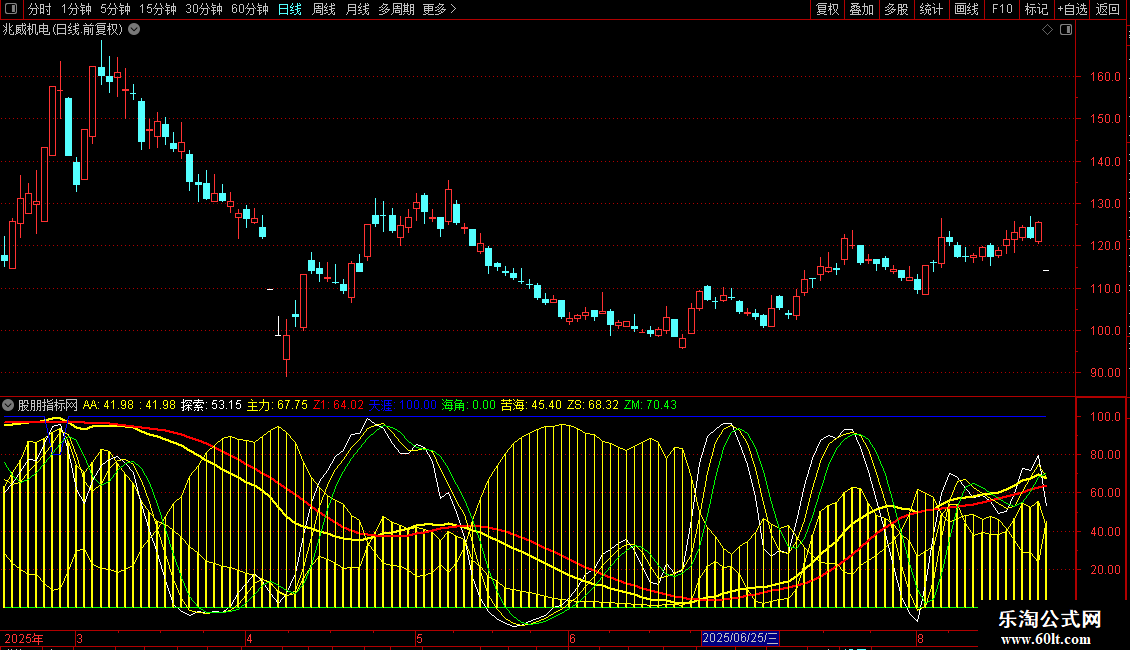 主力: (-1)*(EMA(Var7,1)-50)+50,COLORYELLOW,linethick2;