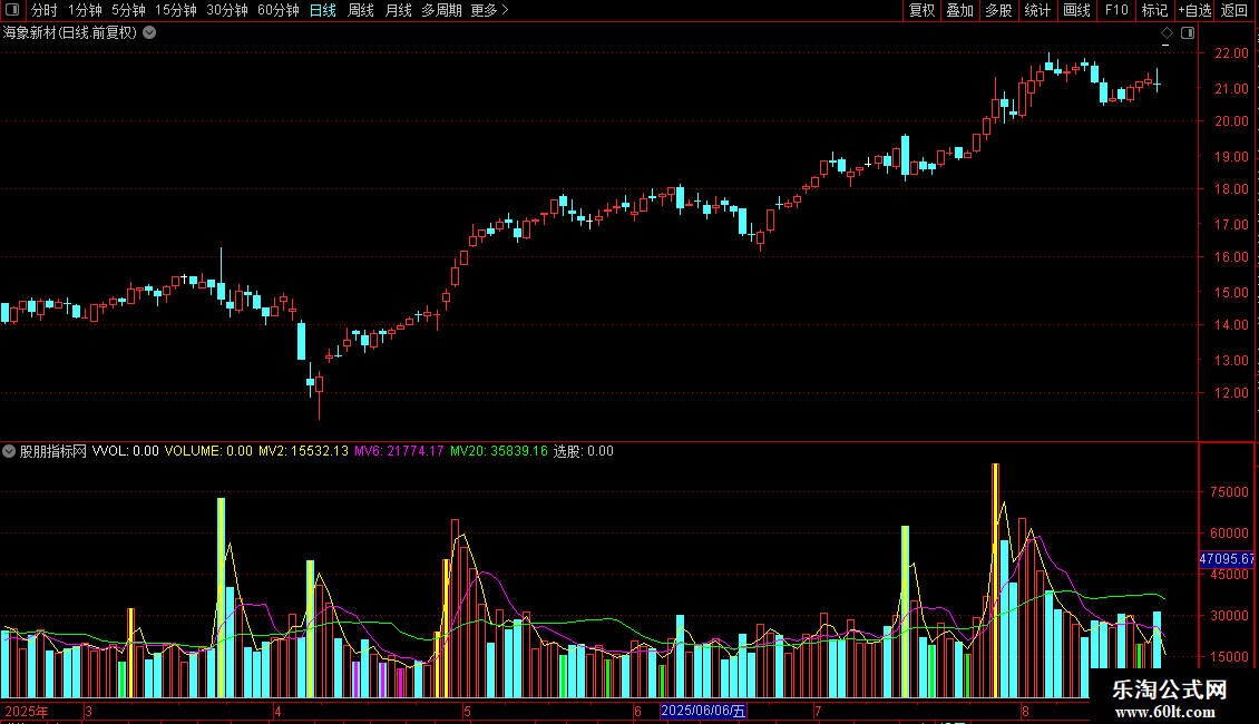 STICKLINE(CURRBARSCOUNT=1 AND PERIOD=5,VVOL,0,-1,-1),COLOR00C0C0;