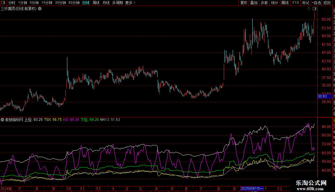 `TSX`(即 `X1`)为核心动态线,结合 `KD` 线、`MA13` 判断趋势方向与强度。