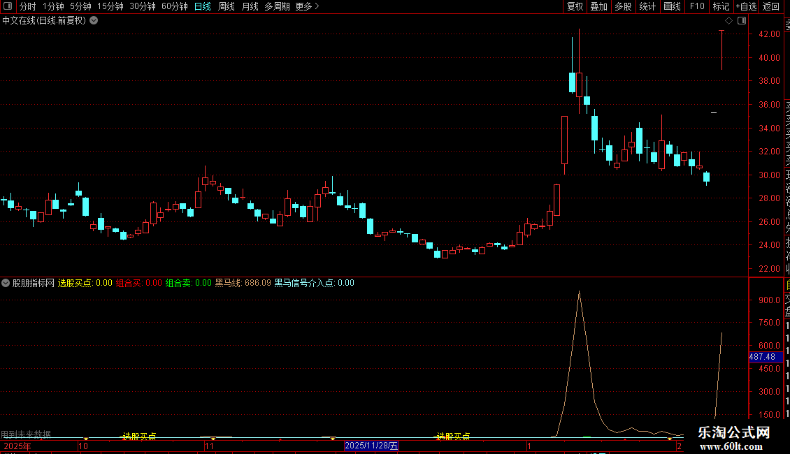 DRAWTEXT(黑马信号介入点>0,4.5,&39;●我的黑马介入点&39;):在“黑马信号介入点”大于0时,在4.5位置绘制红色文字。