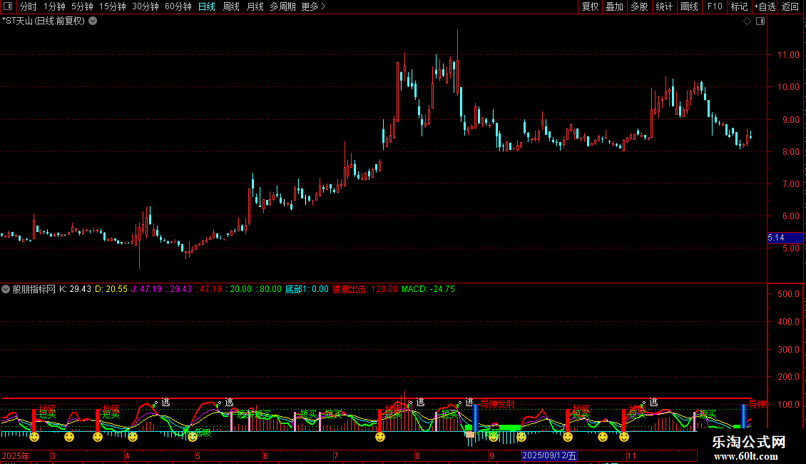 DRAWTEXT((CROSS(J,0) AND (VAR6 <= (0 - 7))),100,'--导弹发射'),COLOR0000FF;
