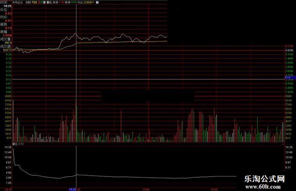 TT:=IF(HOUR>12,(HOUR-13)*60+MINUTE+120,(HOUR-9)*60+MINUTE-30); 量比:SUM(V,0)/TT/DYNAINFO(16),COLORYELLOW;